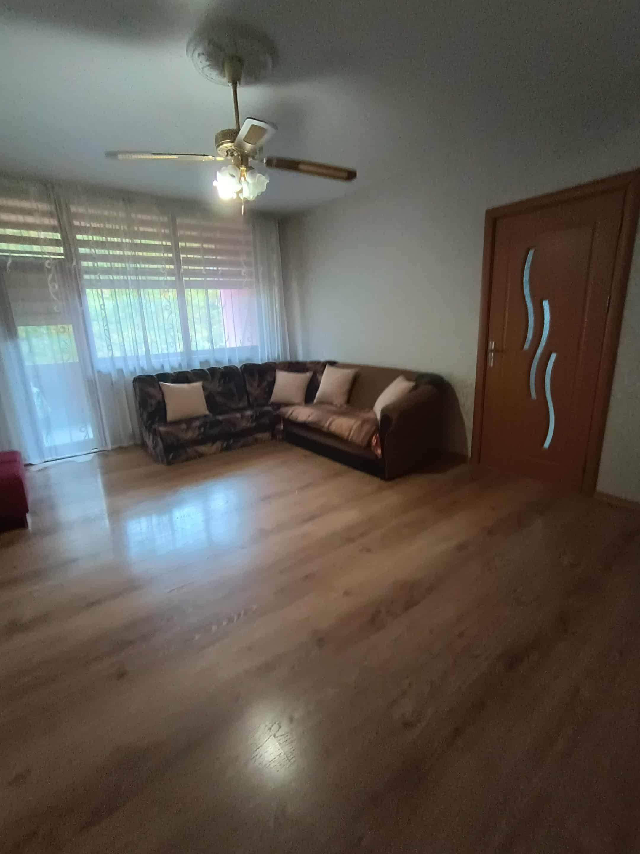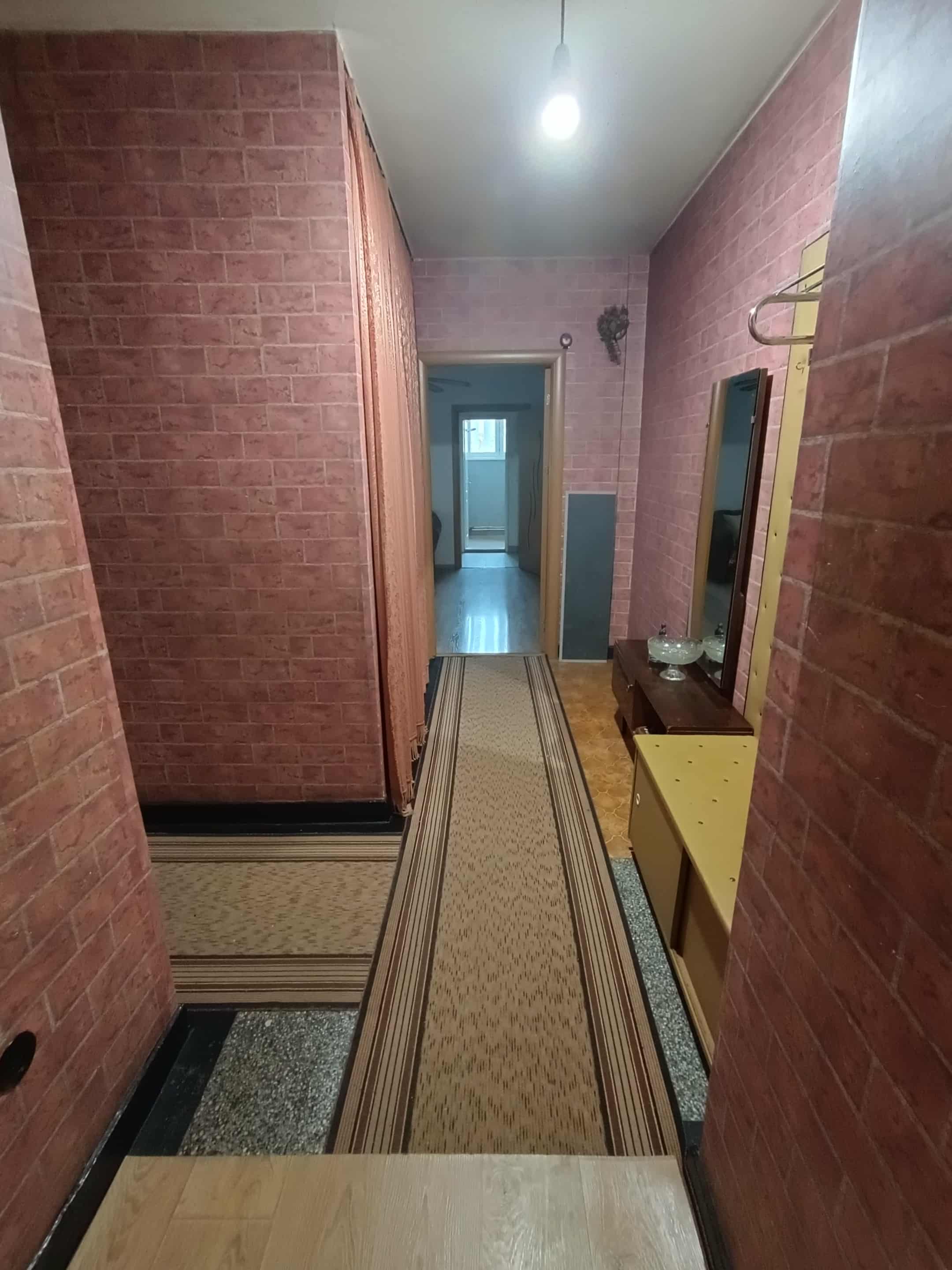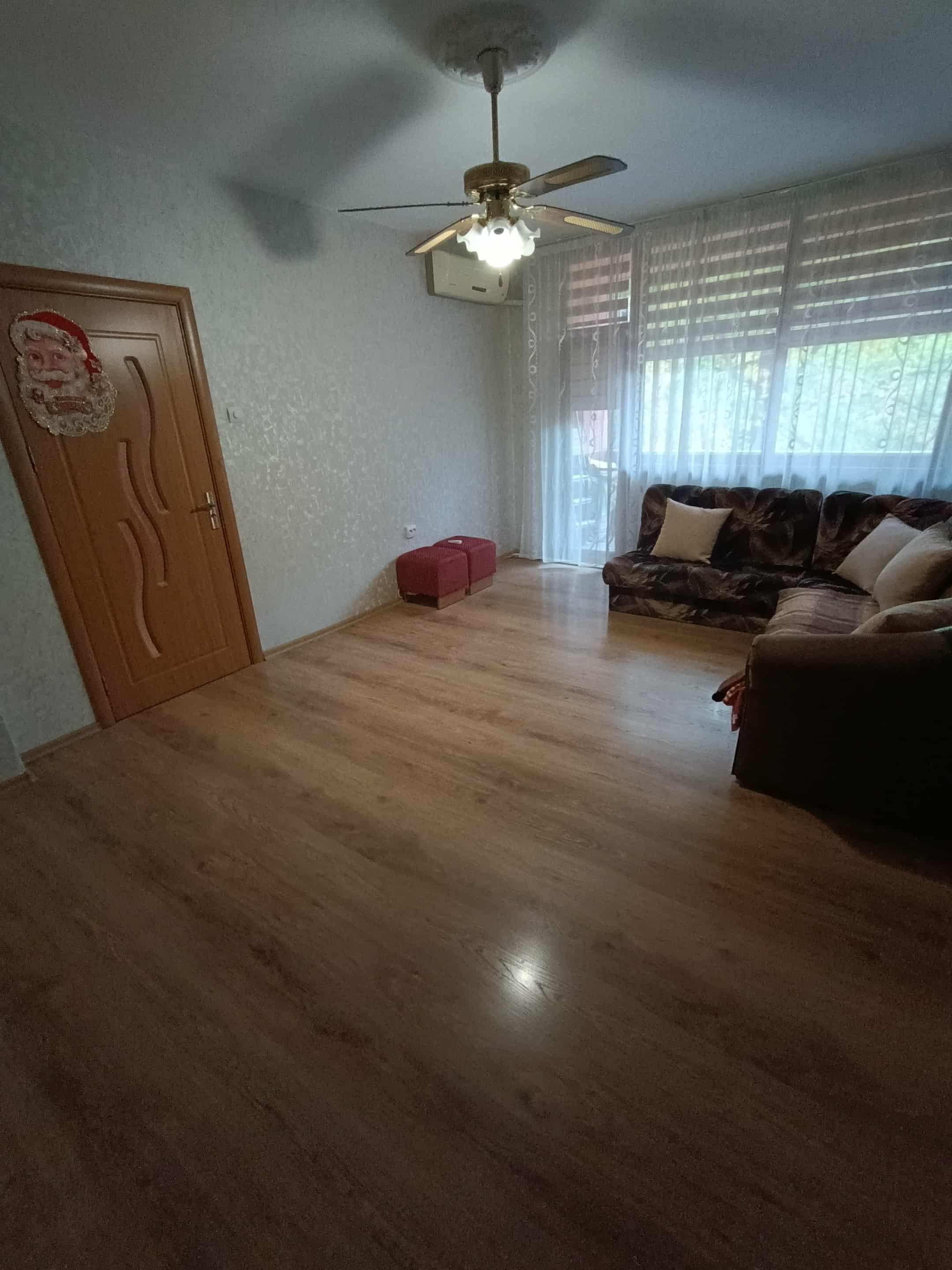 Апартаментът се намира на втори жилищен етаж, площ 93 кв.м. Състои се от входно антре, дневна с кухненски бокс, голям хол с тераса, две самостоятелни спални, отделни баня и тоалетна. Дограма ПВЦ, саниран и газифициран. В добро общо състояние. Прилежащи маза и таванско помещение. Изложение - изток, запад. Комуникативно място - детска градина, училище, търговски обекти.